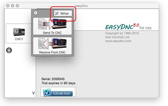 From the menu select the 'Setup' option and the setup windows appears as shown on the next page.