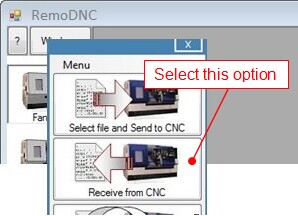 Click the machine icon and select the option to 'Receive from CNC'.